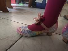 Beautiful shoes, size compatible with table. Free shipping extra fleki and ring. Daughter zachwycona, recommend.