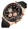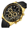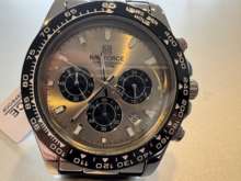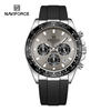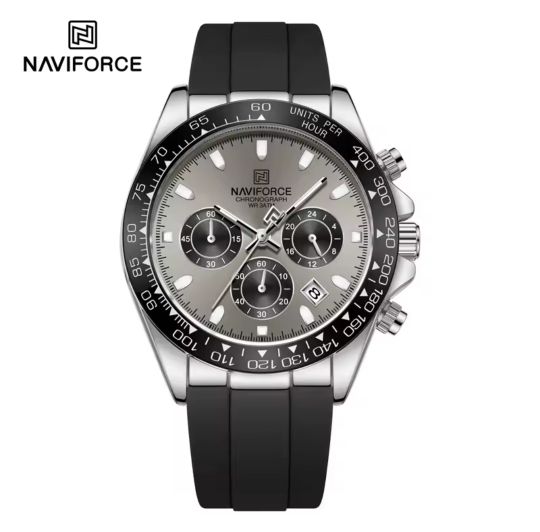 Sport chronograph design.reflective dial looks more expensive. The silicone strap is soft and feels good.this build looks and feels solid.naviforce continues to be a consistent performer.reliable and durable .arrived without box for best cost. Arrived on schedule and we'll wrapped. Would note the three subdials are highly reflective.these subdials have similar color hands which may not be as clear but honestly how often are these operating and the design is brilliant so works overall .