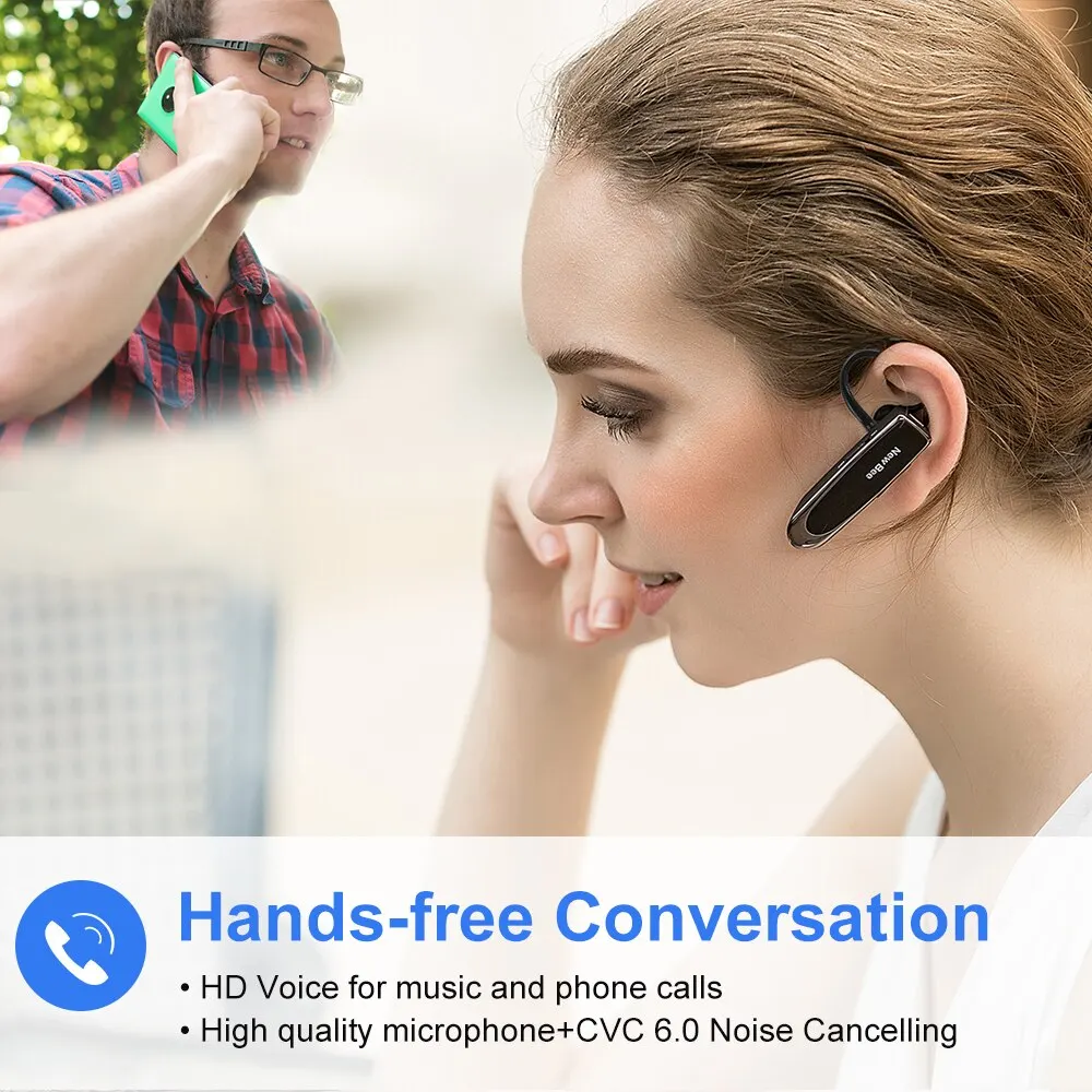 New Bee LC-B41 Wireless Earphones 24 Hours Music Time 1440 Hours Standby Time Bluetooth Headset Handsfree Earphones for Business/Office/Driving